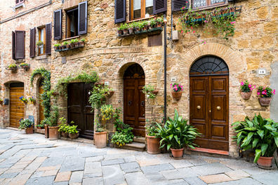 sanfte hügel, überzogen mit duftenden blumenwiesen, imposante festungen, idyllische bauernhäuser und ein spiel wechselnder lichtstimmungen prägen die umgebung von pienza.